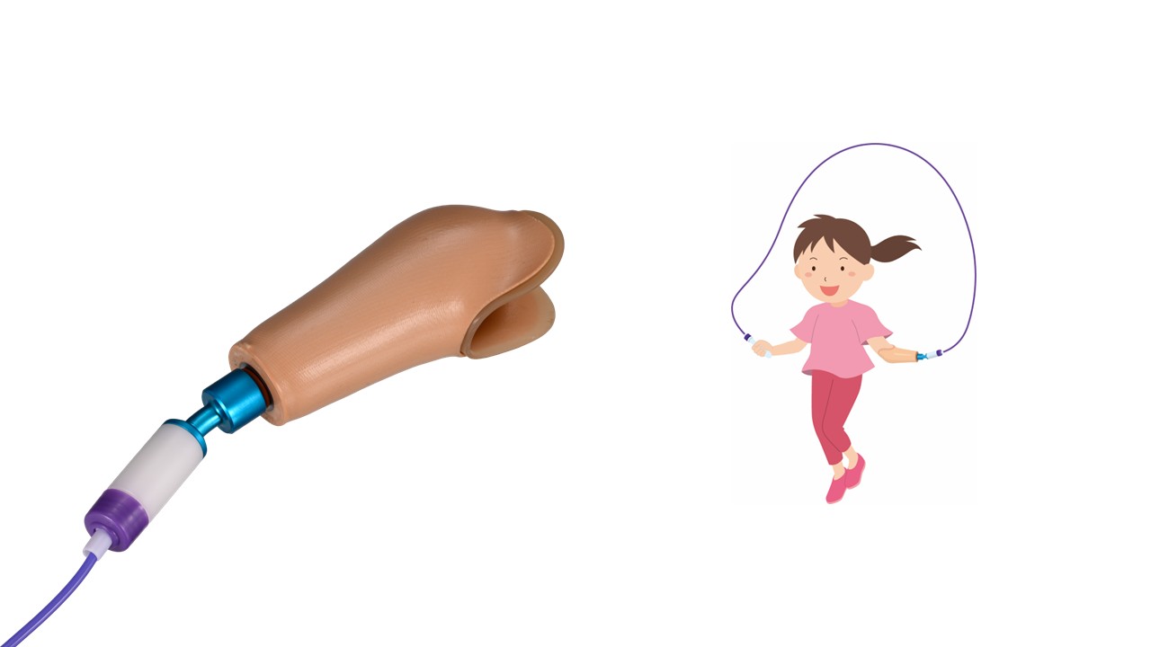 学童の体育授業等に使用できる縄跳び用手先具です。