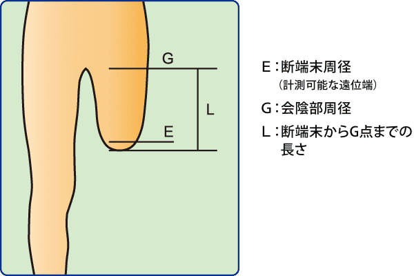 | サイズ | 周径:E | 周径:G | 長さ:L |